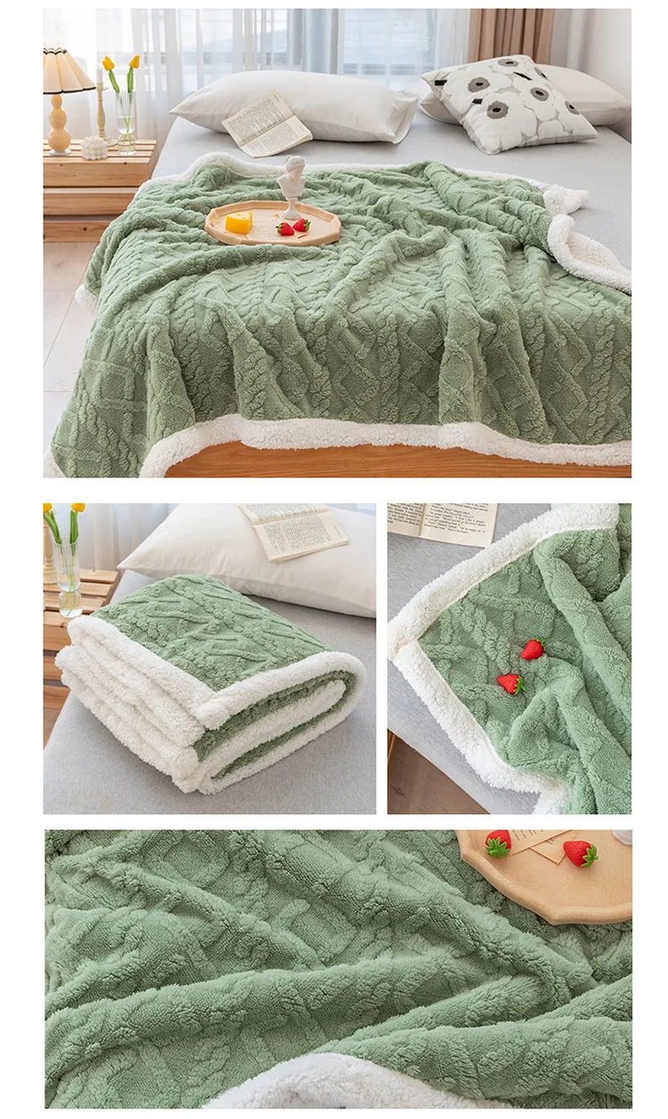 Couette rembourrée en peluche épaisse, couverture chaude, couette en velours, couvre-lit sur le lit, couverture de lit double, point, hiver